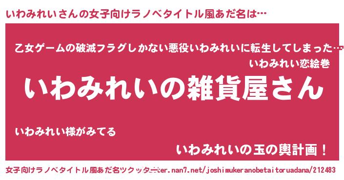 | 男性向けラノベタイトル風あだ名 | 『やはりいわみれいの青春ラブコメはまちがっている 』 |