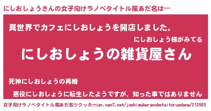 | ファンタジー風あだ名 | 『エターナルニシオショウー』 |