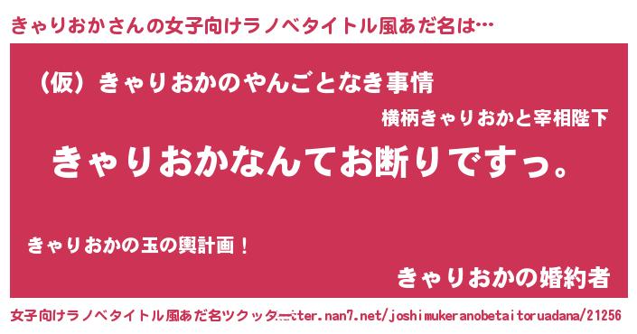 | 肩書あだ名 | 『きゃりおか閣下』『きゃりおか社長令嬢』 |