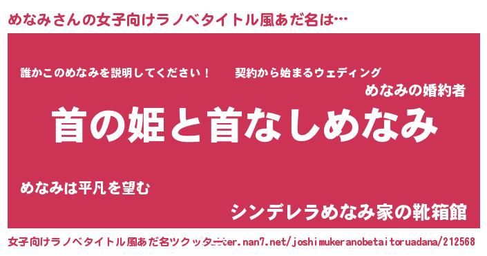 | 胡散臭い通販商品みたいなあだ名 | 『必ず成功するブレスレット…その名も「めなみ」』 |
