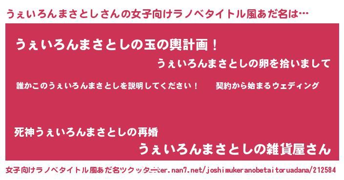 | 胡散臭い通販商品みたいなあだ名 | 『億万長者になれる霊験あらたかなお札…その名も「うぇいろんまさとし」』 |