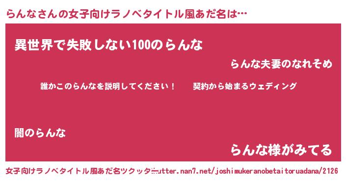 | 胡散臭い通販商品みたいなあだ名 | 『億万長者になれるブレスレット…その名も「らんな」』 |