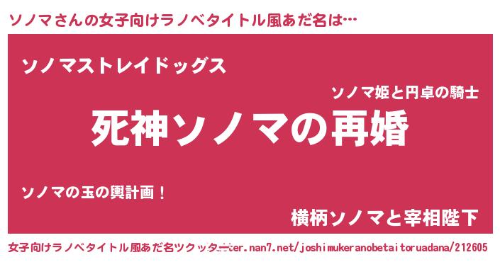 | 男性向けラノベタイトル風あだ名 | 『ノーゲーム・ノーソノマ』 |
