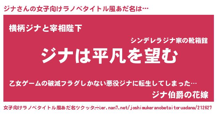 | 男性向けラノベタイトル風あだ名 | 『ダンジョンにジナを求めるのは間違っているだろうか』 |