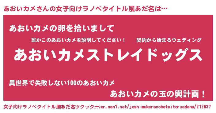| 男性向けラノベタイトル風あだ名 | 『Re:あおいカメから始める異世界生活』 |