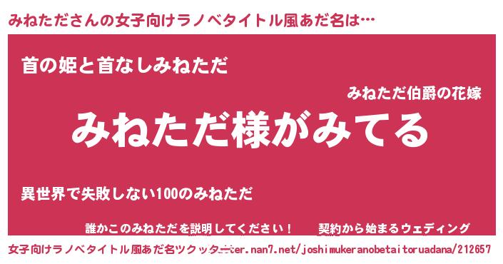 | 男性向けラノベタイトル風あだ名 | 『みねただの嫁は女の子じゃないと思った?』 |