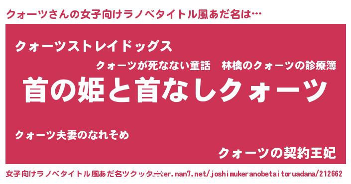 | 胡散臭い通販商品みたいなあだ名 | 『ガンによく効く冬虫夏草…その名も「クォーツ」』 |