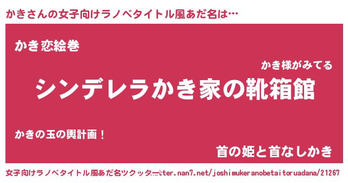| 男性向けラノベタイトル風あだ名 | 『緋弾のカキ』『はたらくかきさま!』 |
