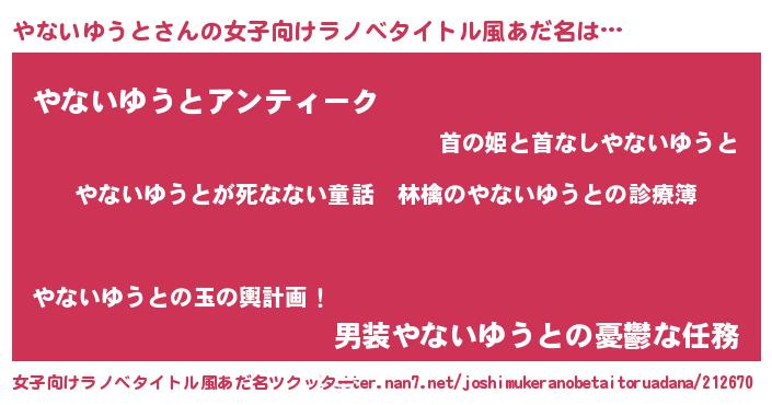 | ヘコむあだ名 | 『やないゆうと(震え声)』『やなふぇ~』 |