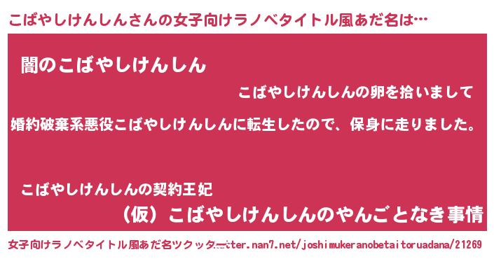 | 男性向けラノベタイトル風あだ名 | 『転生したらこばやしけんしんだった件』 |