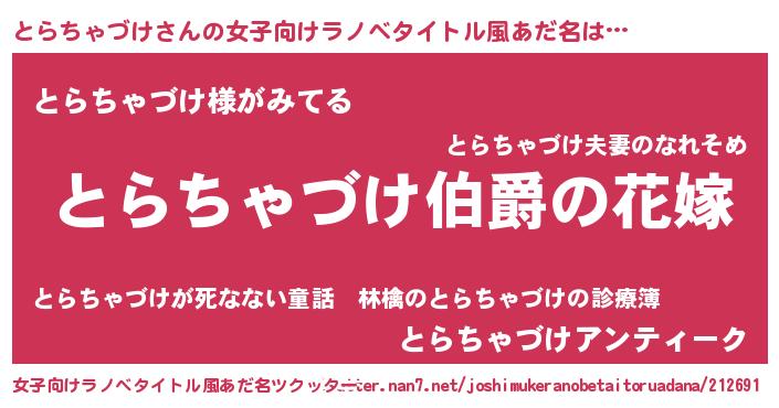 | 欧米人風あだ名 | 『とらちゃづけクリステル』 |