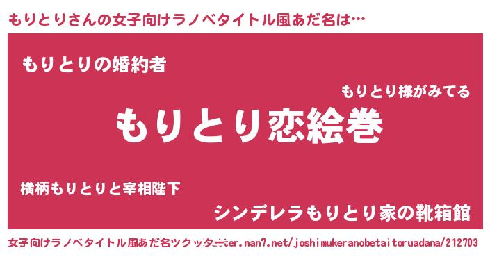 | 肩書あだ名 | 『もりとり学部長』『もりとり総理大臣』 |