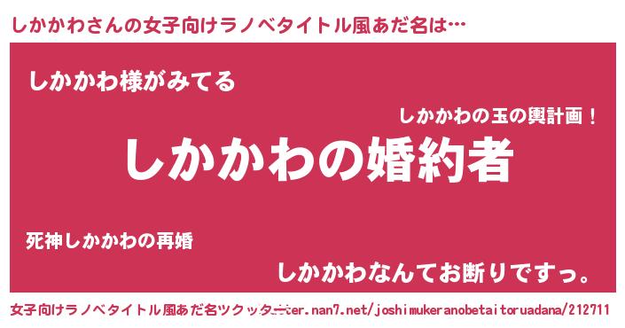| 胡散臭い通販商品みたいなあだ名 | 『運命の人と巡り会える高級そうな絵画…その名も「しかかわ」』 |