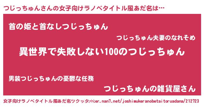 | 男性向けラノベタイトル風あだ名 | 『つじっちゅんという概念が存在しない退屈な世界 』 |