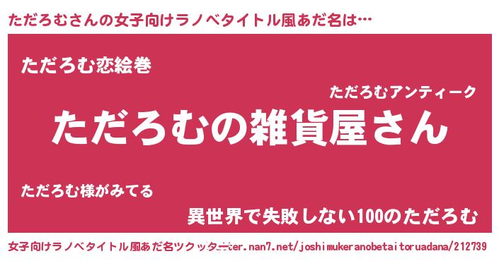 | 男性向けラノベタイトル風あだ名 | 『やはりただろむの青春ラブコメはまちがっている 』 |