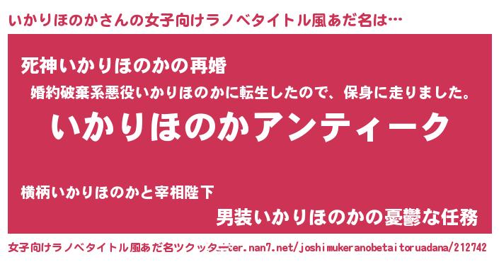 | 意味不明あだ名 | 『自称いかりほのか』 |