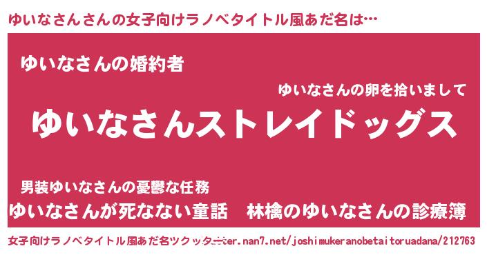 | 男性向けラノベタイトル風あだ名 | 『Re:ゆいなさんから始める異世界生活』 |