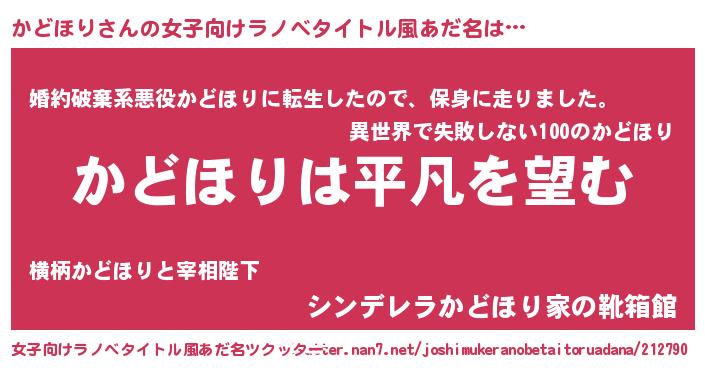 | 胡散臭い通販商品みたいなあだ名 | 『信頼と実績のネックレス…その名も「かどほり」』 |