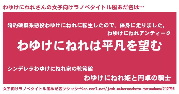 | 胡散臭い通販商品みたいなあだ名 | 『信頼と実績のサプリメント…その名も「わゆけにねれ」』 |