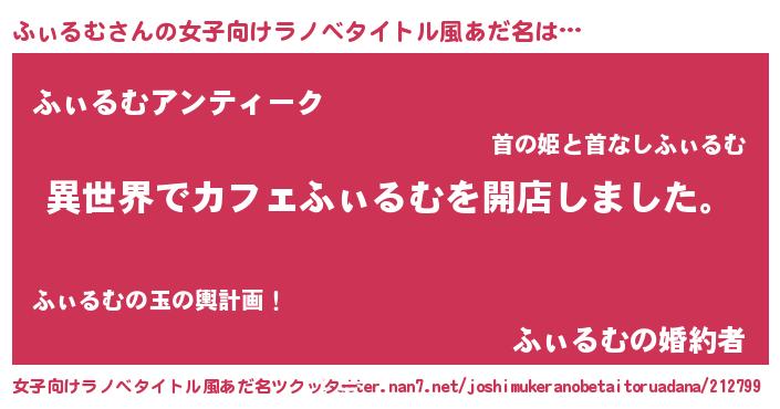 | 意味不明あだ名 | 『永久保存ふぃるむ』『自称ふぃるむ』 |
