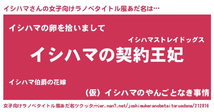| 男性向けラノベタイトル風あだ名 | 『イシハマという概念が存在しない退屈な世界 』 |