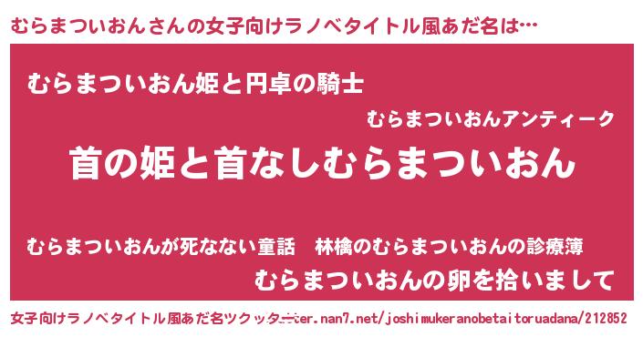 | 胡散臭い通販商品みたいなあだ名 | 『必ず成功する霊験あらたかなお札…その名も「むらまついおん」』 |