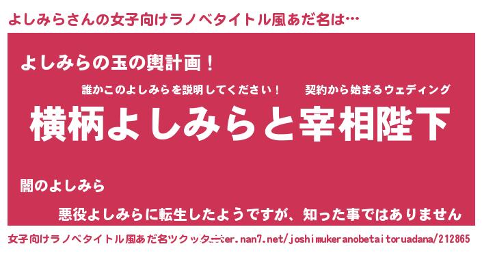 | 男性向けラノベタイトル風あだ名 | 『よしみらに滅ぼされるだけの簡単なお仕事です』 |