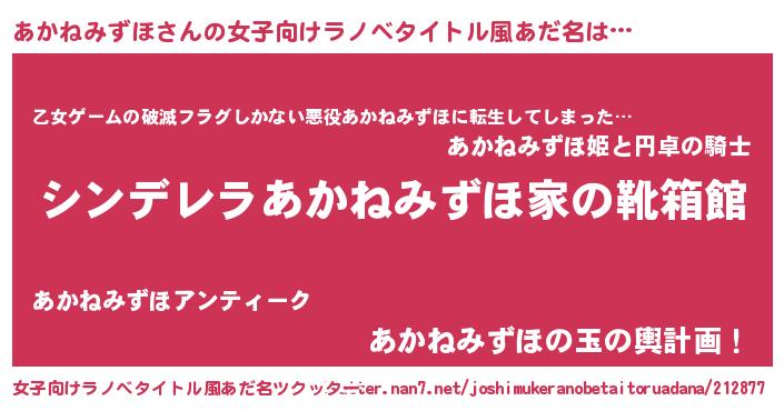 | 男性向けラノベタイトル風あだ名 | 『緋弾のアカネミズホ』 |