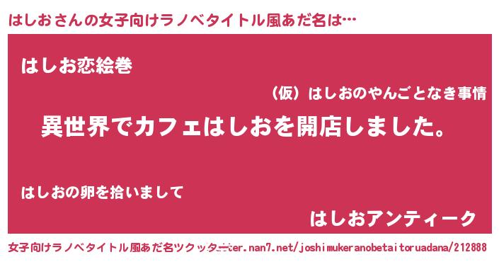 | 意味不明あだ名 | 『永久保存はしお』『自称はしお』 |