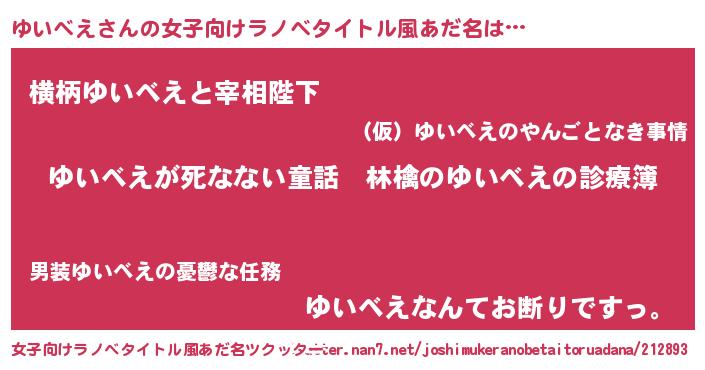 | 恥ずかしいあだ名 | 『ユイベエデラックス』『ゆいっちょ』 |