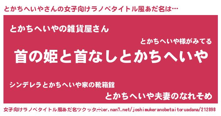 | 男性向けラノベタイトル風あだ名 | 『はたらくとかちへいやさま!』 |