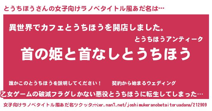 | 意味不明あだ名 | 『永久保存とうちほう』『自称とうちほう』 |