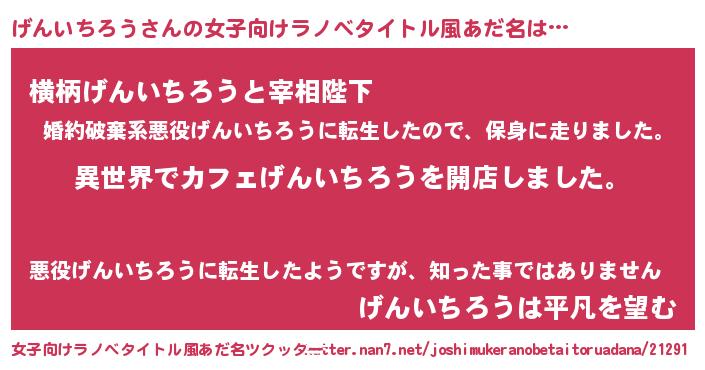 | 男性向けラノベタイトル風あだ名 | 『誰もが恐れるあのげんいちろうが、ぼくの専属メイドになるようです。』 |