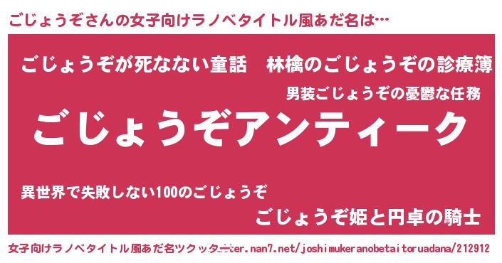 | 男性向けラノベタイトル風あだ名 | 『魔法科高校のごじょうぞ』 |