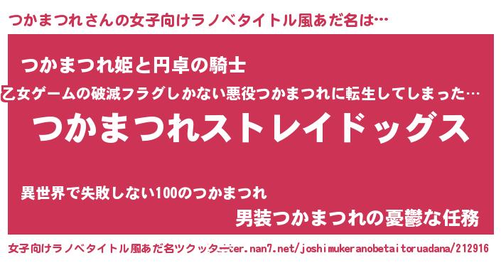 | 男性向けラノベタイトル風あだ名 | 『Re:つかまつれから始める異世界生活』 |