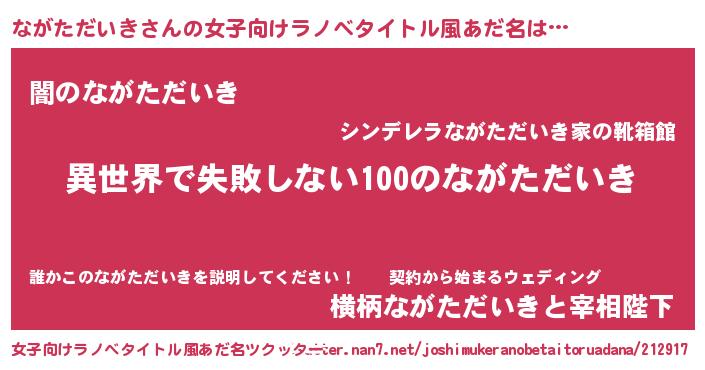 | 男性向けラノベタイトル風あだ名 | 『ながただいきという概念が存在しない退屈な世界 』 |