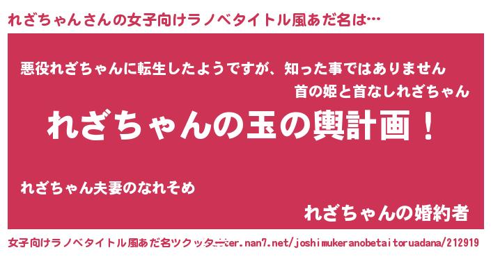 | 男性向けラノベタイトル風あだ名 | 『れざちゃん~年齢イコール彼女いない歴の魔法使い~』 |