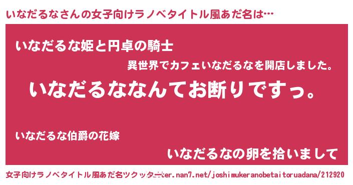 | 男性向けラノベタイトル風あだ名 | 『魔法科高校のいなだるな』 |