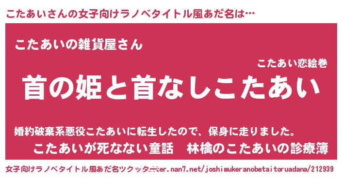 | 意味不明あだ名 | 『こたあいフォーエバー』『自称こたあい』 |