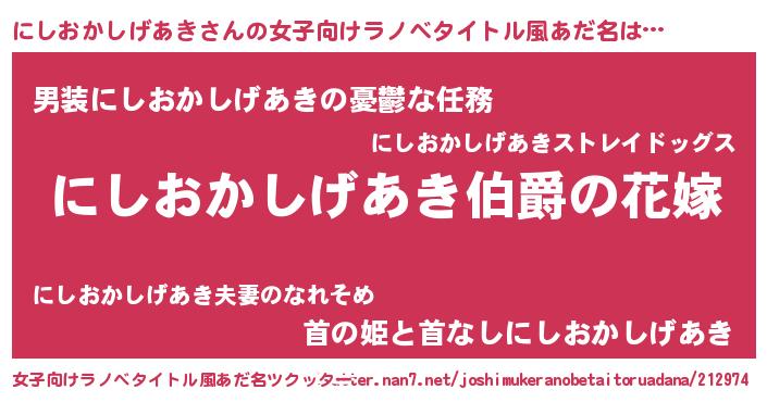 | 欧米人風あだ名 | 『にしおかしげあきクリステル』 |