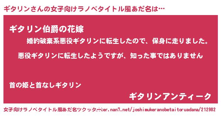 | 胡散臭い通販商品みたいなあだ名 | 『あなたにだけ特別に提供する世界で10本だけ現存している希少なブランデー…その名も「ギタリン」』 |