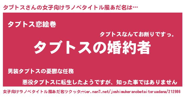 | 意味不明あだ名 | 『タブトスフォーエバー』『自称タブトス』 |