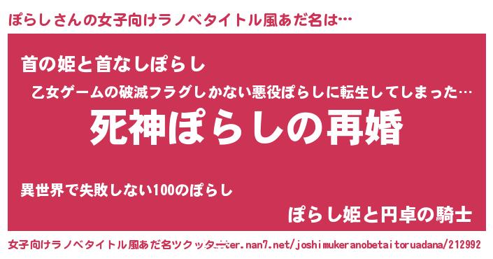 | 男性向けラノベタイトル風あだ名 | 『ノーゲーム・ノーポラシ』 |