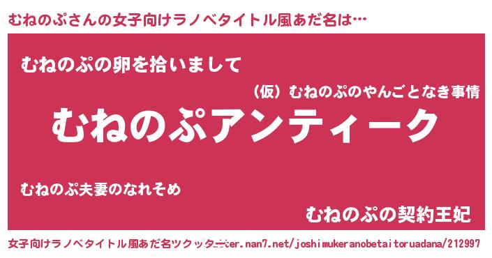 | 欧米人風あだ名 | 『ケンブリッジむねのぷ』 |