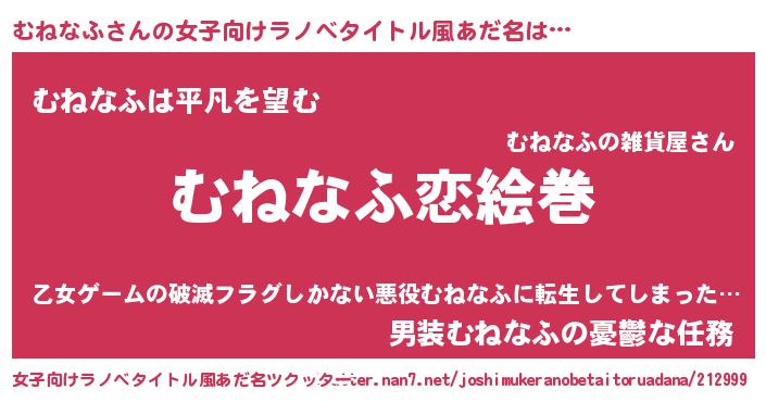 | 男性向けラノベタイトル風あだ名 | 『ノーゲーム・ノームネナフ』 |