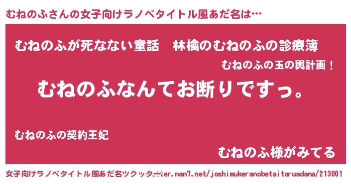 | 意味不明あだ名 | 『自称むねのふ』『なめこ科むねのふ属』 |