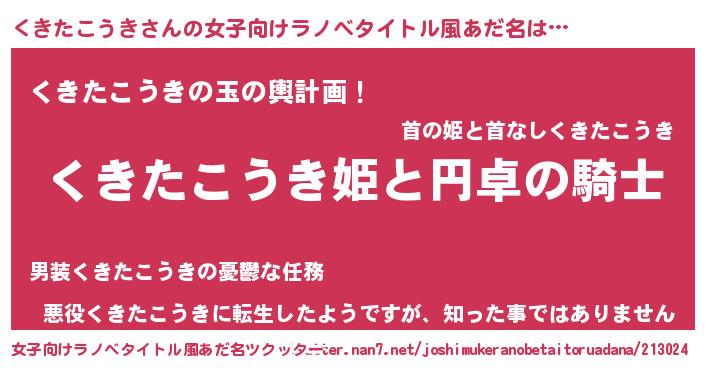 | 男性向けラノベタイトル風あだ名 | 『くきたこうきの憂鬱』 |