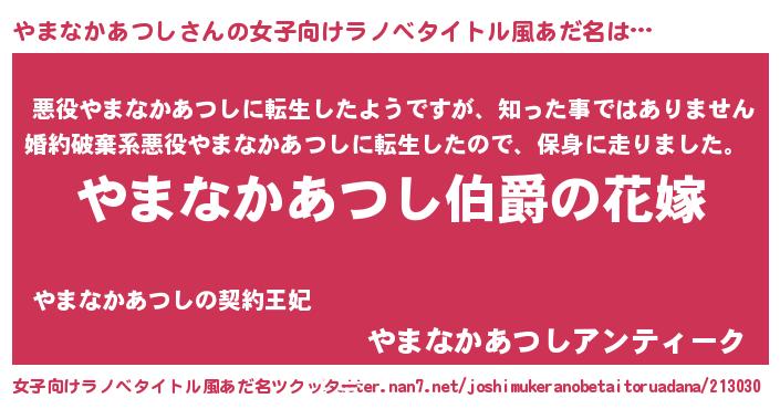 | ファンタジー風あだ名 | 『エターナルヤマナカアツシー』 |