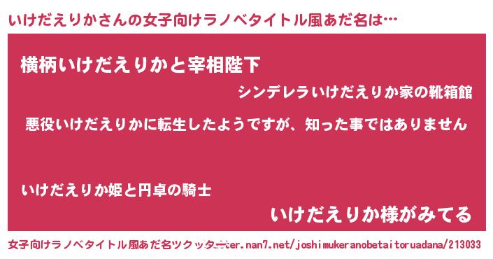 | 男性向けラノベタイトル風あだ名 | 『この素晴らしい世界にいけだえりかを!』 |