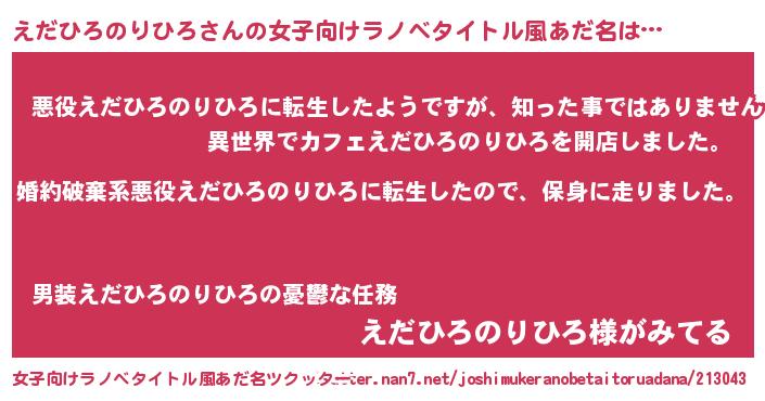 | 胡散臭い通販商品みたいなあだ名 | 『ハリウッド女優が絶賛した世界で10本だけ現存している希少なブランデー…その名も「えだひろのりひろ」』 |